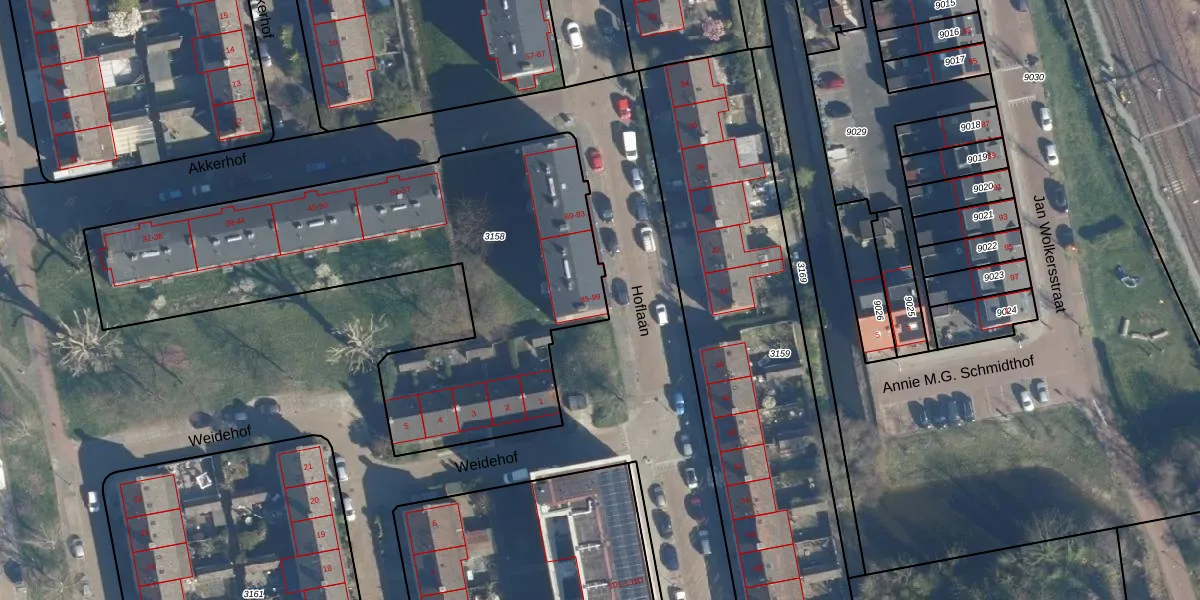 Hoflaan 93 is gelegen op kadastraal perceel LDN01O3158. Deze kadastrale aanduiding is uniek en wordt gebruikt door het Kadaster om eigendomsrechten en andere zakelijke rechten vast te leggen. Het perceel maakt onderdeel uit van de kadastrale gemeente Leiden.