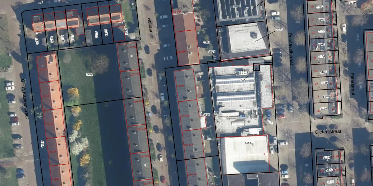 Het perceel waarop het adres ligt is LDN01-O-2636. De afkorting 'LDN01' staat voor kadastrale gemeente Leiden. Het perceel is met 1139 m² relatief groot. Het gemiddelde ligt in de kadastrale gemeente Leiden op 703,94 m². Het kleinste perceel in de kadastrale gemeente is 0 m² groot. De grootste perceeloppervlakte is 51,8 ha. Op het perceel zijn 13 adressen aanwezig. In de Basisregistratie Kadaster (BRK) werden de grenzen van het perceel geregistreerd op 06-09-2007.
