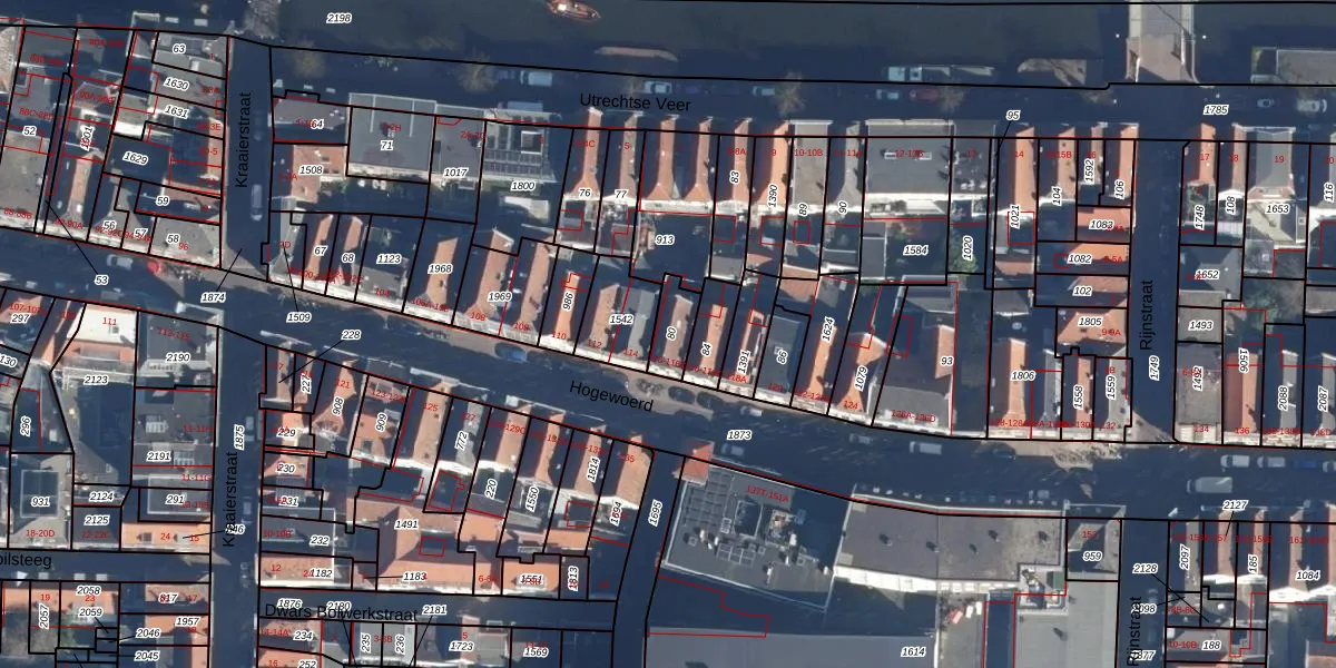 Het perceel waarop Hogewoerd 116-B staat heeft een oppervlakte van 71 m². Dit is een klein perceel. De perceeloppervlakte wordt geregistreerd door het Kadaster. Gedetailleerde informatie over de maten van dit perceel kunt u vinden in het rapport Kadastrale kaart met maatvoering van Hogewoerd 116-B.
