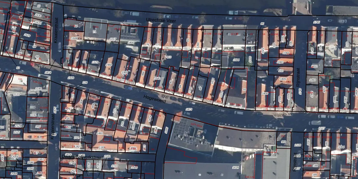 Het perceel waarop Hogewoerd 118 staat heeft een oppervlakte van 88 m². Dit is een klein perceel. De perceeloppervlakte wordt geregistreerd door het Kadaster. Gedetailleerde informatie over de maten van dit perceel kunt u vinden in het rapport Kadastrale kaart met maatvoering van Hogewoerd 118.