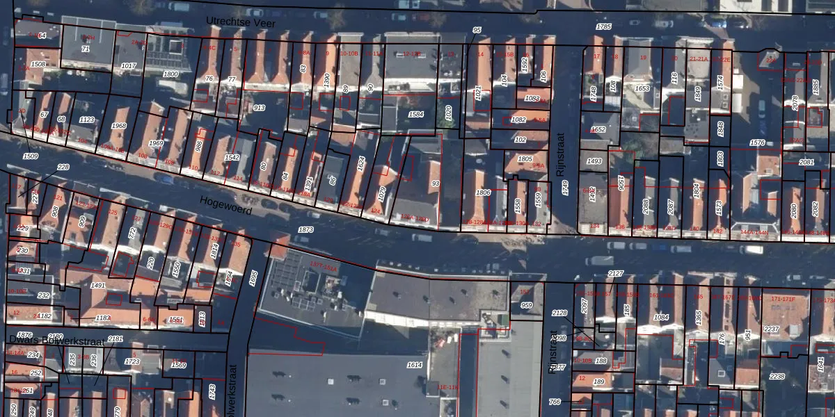 Het perceel waarop Hogewoerd 126-D staat heeft een oppervlakte van 348 m². Dit is een groot perceel. De perceeloppervlakte wordt geregistreerd door het Kadaster. Gedetailleerde informatie over de maten van dit perceel kunt u vinden in het rapport Kadastrale kaart met maatvoering van Hogewoerd 126-D.