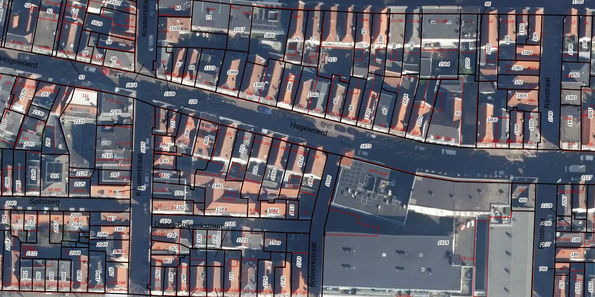 Het perceel waarop Hogewoerd 133 staat heeft een oppervlakte van 107 m². Dit is een middelgroot perceel. De perceeloppervlakte wordt geregistreerd door het Kadaster. Gedetailleerde informatie over de maten van dit perceel kunt u vinden in het rapport Kadastrale kaart met maatvoering van Hogewoerd 133.