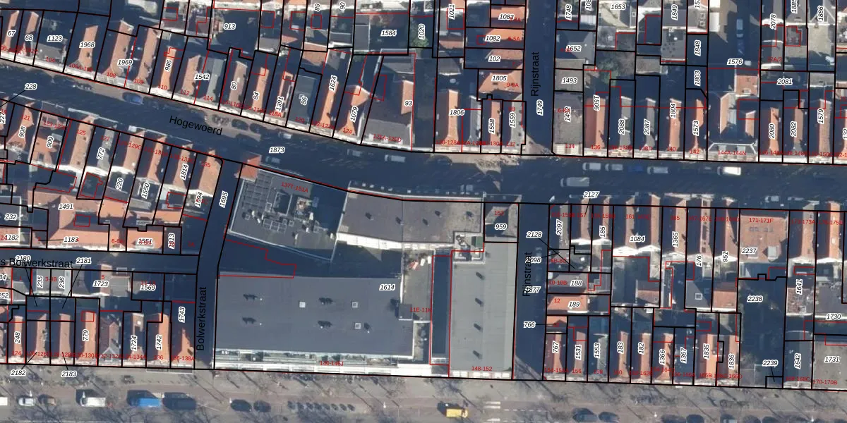 Het perceel waarop Hogewoerd 141 staat heeft een oppervlakte van 2944 m². Dit is een zeer groot perceel. De perceeloppervlakte wordt geregistreerd door het Kadaster. Gedetailleerde informatie over de maten van dit perceel kunt u vinden in het rapport Kadastrale kaart met maatvoering van Hogewoerd 141.