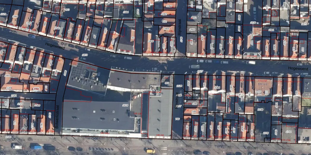 Het perceel waarop Hogewoerd 151 staat heeft een oppervlakte van 2944 m². Dit is een zeer groot perceel. De perceeloppervlakte wordt geregistreerd door het Kadaster. Gedetailleerde informatie over de maten van dit perceel kunt u vinden in het rapport Kadastrale kaart met maatvoering van Hogewoerd 151.