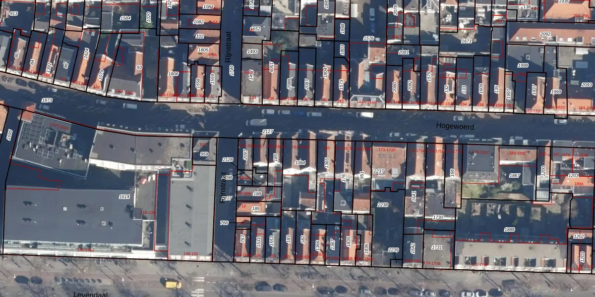 Het perceel waarop Hogewoerd 161-A staat heeft een oppervlakte van 280 m². Dit is een middelgroot perceel. De perceeloppervlakte wordt geregistreerd door het Kadaster. Gedetailleerde informatie over de maten van dit perceel kunt u vinden in het rapport Kadastrale kaart met maatvoering van Hogewoerd 161-A.