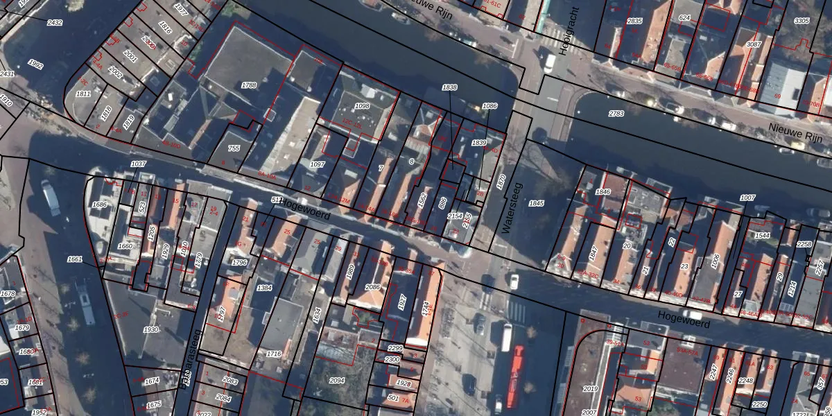 Hogewoerd 18 is gelegen op kadastraal perceel LDN01D1562. Deze kadastrale aanduiding is uniek en wordt gebruikt door het Kadaster om eigendomsrechten en andere zakelijke rechten vast te leggen. Het perceel maakt onderdeel uit van de kadastrale gemeente Leiden.