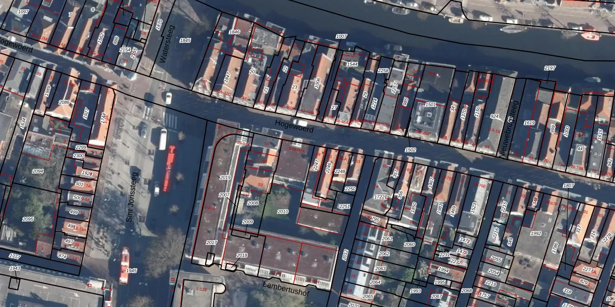 Het perceel waarop Hogewoerd 55-A staat heeft een oppervlakte van 857 m². Dit is een groot perceel. De perceeloppervlakte wordt geregistreerd door het Kadaster. Gedetailleerde informatie over de maten van dit perceel kunt u vinden in het rapport Kadastrale kaart met maatvoering van Hogewoerd 55-A.