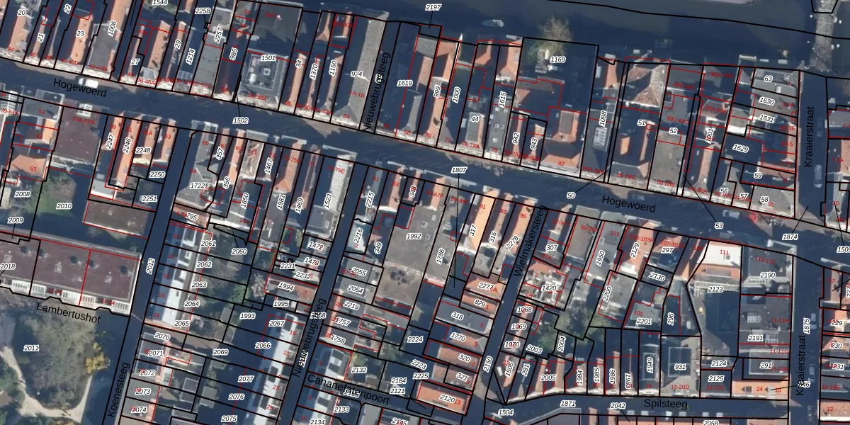 Hogewoerd 87-F is gelegen op kadastraal perceel LDN01D1992. Deze kadastrale aanduiding is uniek en wordt gebruikt door het Kadaster om eigendomsrechten en andere zakelijke rechten vast te leggen. Het perceel maakt onderdeel uit van de kadastrale gemeente Leiden.