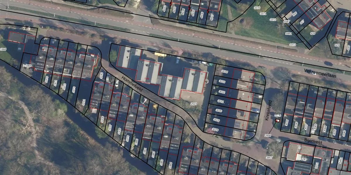 Het perceel waarop Hommelveld 39 staat heeft een oppervlakte van 1445 m². Dit is een zeer groot perceel. De perceeloppervlakte wordt geregistreerd door het Kadaster. Gedetailleerde informatie over de maten van dit perceel kunt u vinden in het rapport Kadastrale kaart met maatvoering van Hommelveld 39.