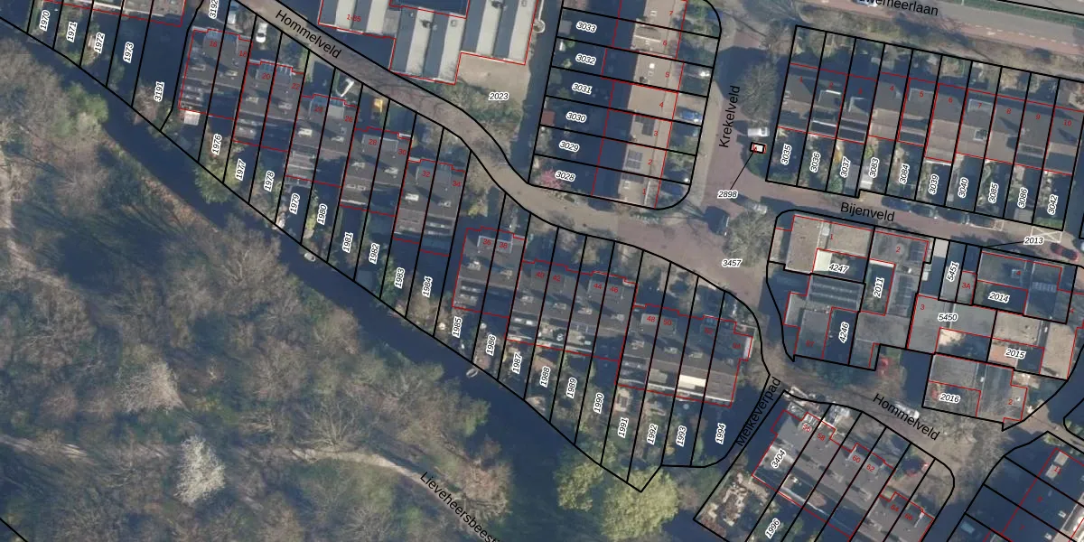 Gebruik de zoekbalk of klik op een perceel voor informatie over de adressen binnen dit perceel.