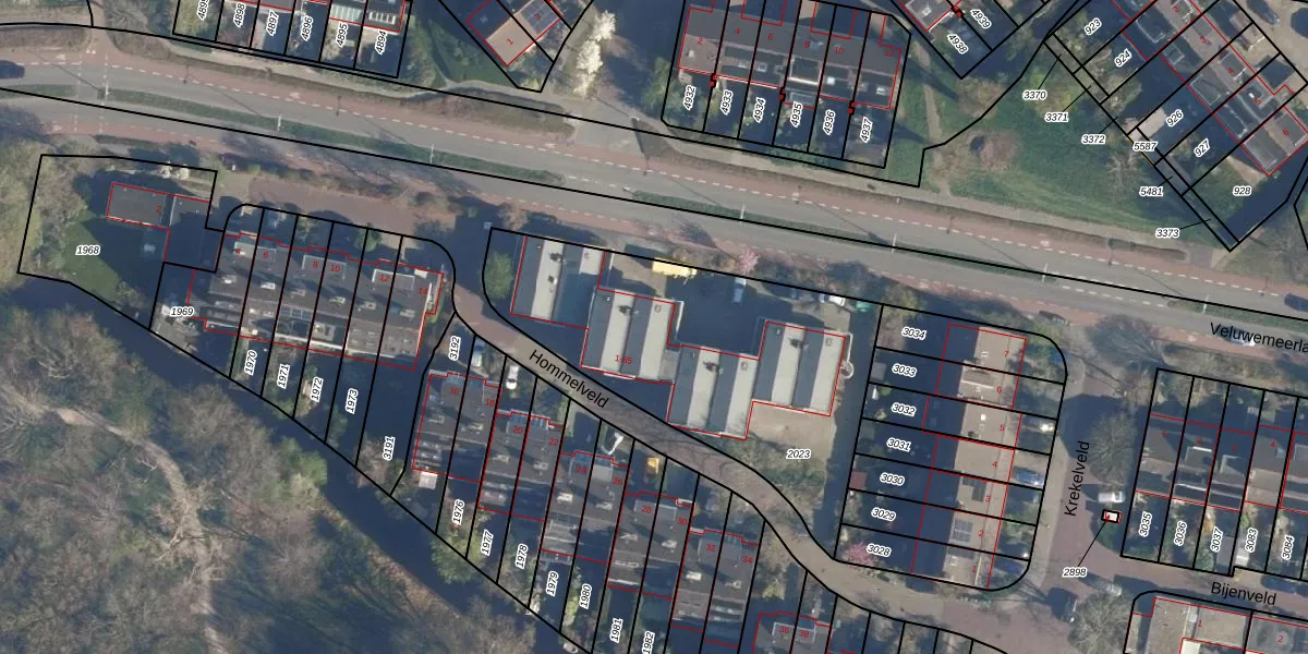 Het perceel waarop Hommelveld 65 staat heeft een oppervlakte van 1445 m². Dit is een zeer groot perceel. De perceeloppervlakte wordt geregistreerd door het Kadaster. Gedetailleerde informatie over de maten van dit perceel kunt u vinden in het rapport Kadastrale kaart met maatvoering van Hommelveld 65.