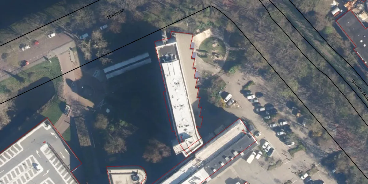 Het perceel waarop Houtlaan 187 staat heeft een oppervlakte van 3,8 ha. Dit is een zeer groot perceel. De perceeloppervlakte wordt geregistreerd door het Kadaster. Gedetailleerde informatie over de maten van dit perceel kunt u vinden in het rapport Kadastrale kaart met maatvoering van Houtlaan 187.