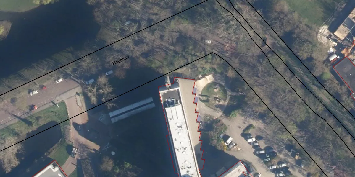 Het perceel waarop Houtlaan 201 staat heeft een oppervlakte van 3,8 ha. Dit is een zeer groot perceel. De perceeloppervlakte wordt geregistreerd door het Kadaster. Gedetailleerde informatie over de maten van dit perceel kunt u vinden in het rapport Kadastrale kaart met maatvoering van Houtlaan 201.