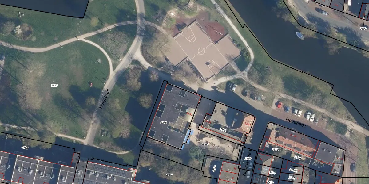 Het perceel waarop Houtmarkt 36 staat heeft een oppervlakte van 710 m². Dit is een groot perceel. De perceeloppervlakte wordt geregistreerd door het Kadaster. Gedetailleerde informatie over de maten van dit perceel kunt u vinden in het rapport Kadastrale kaart met maatvoering van Houtmarkt 36.