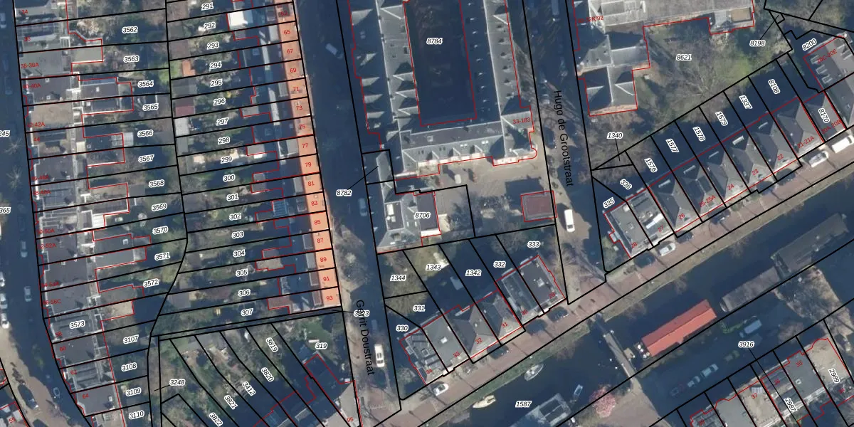 Het perceel waarop Hugo de Grootstraat 155 staat heeft een oppervlakte van 323 m². Dit is een groot perceel. De perceeloppervlakte wordt geregistreerd door het Kadaster. Gedetailleerde informatie over de maten van dit perceel kunt u vinden in het rapport Kadastrale kaart met maatvoering van Hugo de Grootstraat 155.