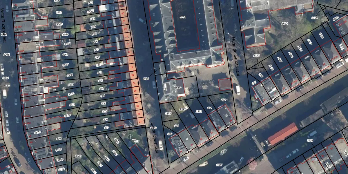 Het perceel waarop Hugo de Grootstraat 173 staat heeft een oppervlakte van 323 m². Dit is een groot perceel. De perceeloppervlakte wordt geregistreerd door het Kadaster. Gedetailleerde informatie over de maten van dit perceel kunt u vinden in het rapport Kadastrale kaart met maatvoering van Hugo de Grootstraat 173.