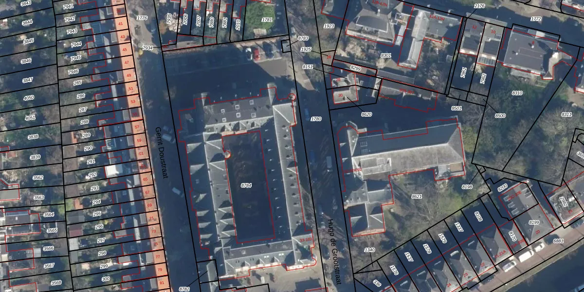 Hugo de Grootstraat 47 is gelegen op kadastraal perceel LDN01M8784. Deze kadastrale aanduiding is uniek en wordt gebruikt door het Kadaster om eigendomsrechten en andere zakelijke rechten vast te leggen. Het perceel maakt onderdeel uit van de kadastrale gemeente Leiden.