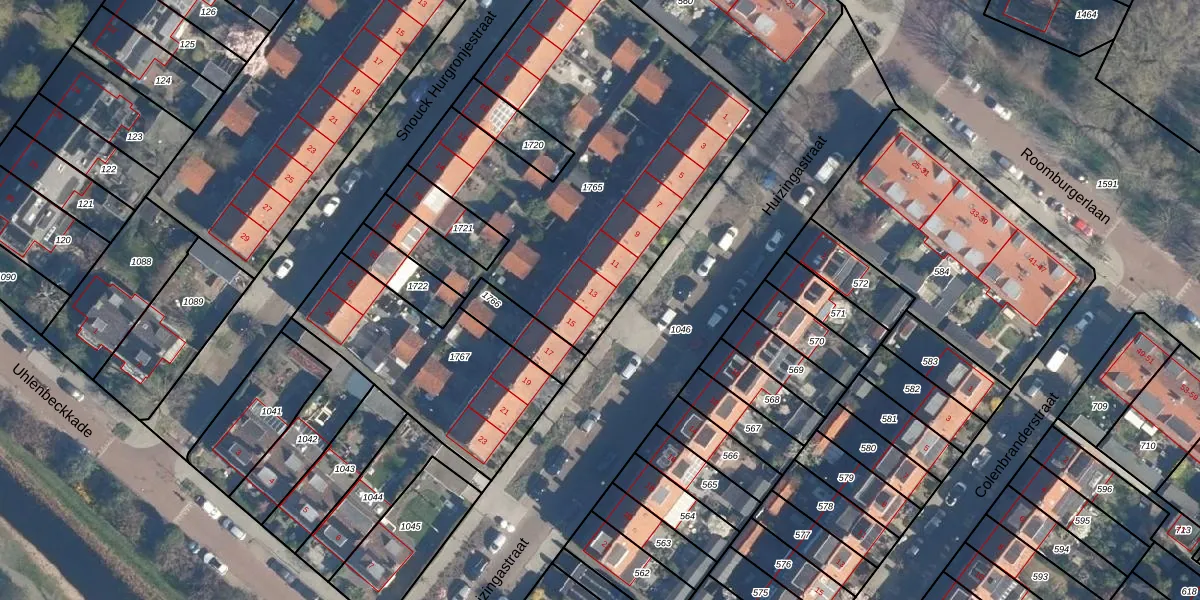 Huizingastraat 13 is gelegen op kadastraal perceel LDN01Q1765. Deze kadastrale aanduiding is uniek en wordt gebruikt door het Kadaster om eigendomsrechten en andere zakelijke rechten vast te leggen. Het perceel maakt onderdeel uit van de kadastrale gemeente Leiden.