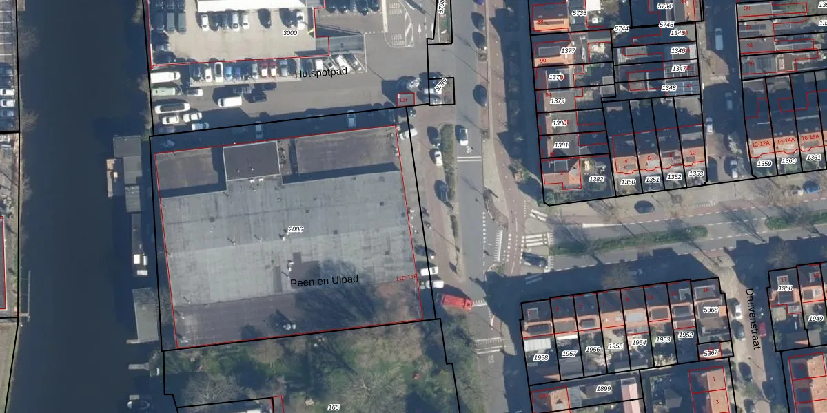 Het perceel waarop Hutspotpad 18 staat heeft een oppervlakte van 3355 m². Dit is een zeer groot perceel. De perceeloppervlakte wordt geregistreerd door het Kadaster. Gedetailleerde informatie over de maten van dit perceel kunt u vinden in het rapport Kadastrale kaart met maatvoering van Hutspotpad 18.