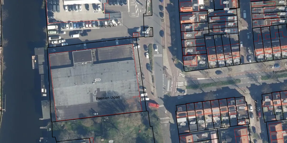 Het perceel waarop Hutspotpad 2 staat heeft een oppervlakte van 5,6 ha. Dit is een zeer groot perceel. De perceeloppervlakte wordt geregistreerd door het Kadaster. Gedetailleerde informatie over de maten van dit perceel kunt u vinden in het rapport Kadastrale kaart met maatvoering van Hutspotpad 2.