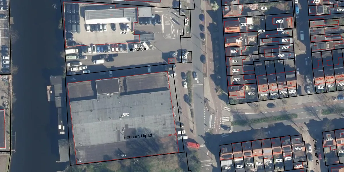 Het perceel waarop Hutspotpad 38 staat heeft een oppervlakte van 3355 m². Dit is een zeer groot perceel. De perceeloppervlakte wordt geregistreerd door het Kadaster. Gedetailleerde informatie over de maten van dit perceel kunt u vinden in het rapport Kadastrale kaart met maatvoering van Hutspotpad 38.