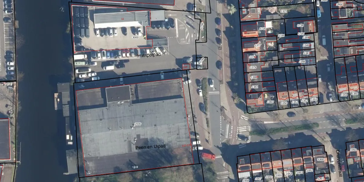 Het perceel waarop Hutspotpad 56 staat heeft een oppervlakte van 3355 m². Dit is een zeer groot perceel. De perceeloppervlakte wordt geregistreerd door het Kadaster. Gedetailleerde informatie over de maten van dit perceel kunt u vinden in het rapport Kadastrale kaart met maatvoering van Hutspotpad 56.