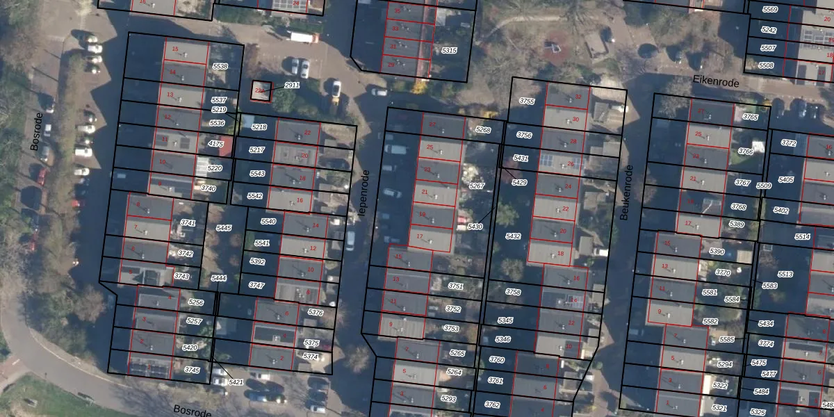 Het perceel waarop Iepenrode 19 staat heeft een oppervlakte van 894 m². Dit is een groot perceel. De perceeloppervlakte wordt geregistreerd door het Kadaster. Gedetailleerde informatie over de maten van dit perceel kunt u vinden in het rapport Kadastrale kaart met maatvoering van Iepenrode 19.