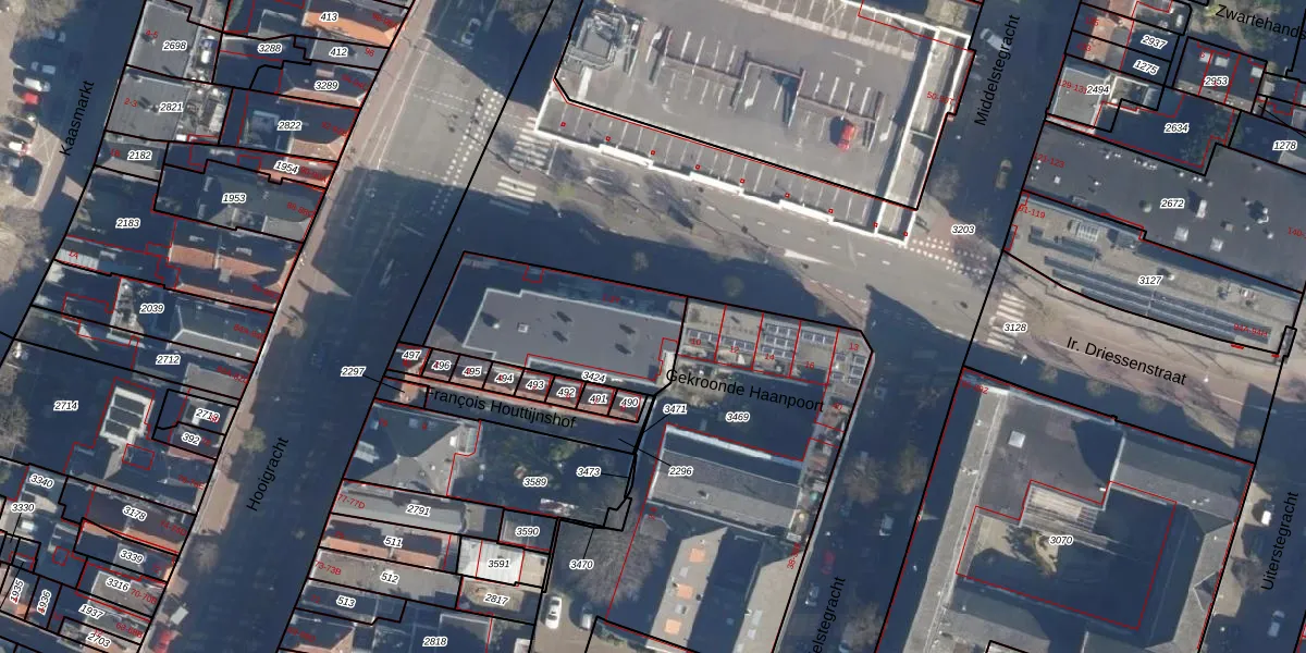 Het adres ligt op het perceel LDN01-I-3424, dat zich in de kadastrale gemeente Leiden bevindt. Het perceel is kleiner dan gemiddeld in Leiden. Het perceel is 562 m² groot, terwijl het gemiddelde ligt op 703,94 m². Het grootste perceel in de kadastrale gemeente is 51,8 ha. Het kleinste perceel heeft een oppervlakte van 0 m². Op het perceel liggen in totaal 22 adressen. In de Basisregistratie Kadaster (BRK) werden de grenzen van het perceel geregistreerd op 04-12-2018.