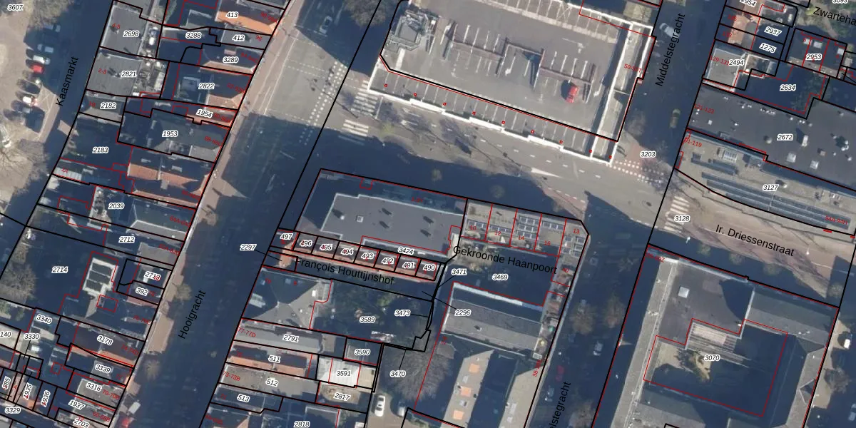 Het adres ligt op het perceel LDN01-I-3424, dat zich in de kadastrale gemeente Leiden bevindt. Het perceel is kleiner dan gemiddeld in Leiden. Het perceel is 562 m² groot, terwijl het gemiddelde ligt op 703,94 m². Het grootste perceel in de kadastrale gemeente is 51,8 ha. Het kleinste perceel heeft een oppervlakte van 0 m². Op het perceel liggen in totaal 22 adressen. De huidige grenzen van het perceel zijn digitaal in de Basisregistratie Kadaster (BRK) geregistreerd op 04-12-2018.