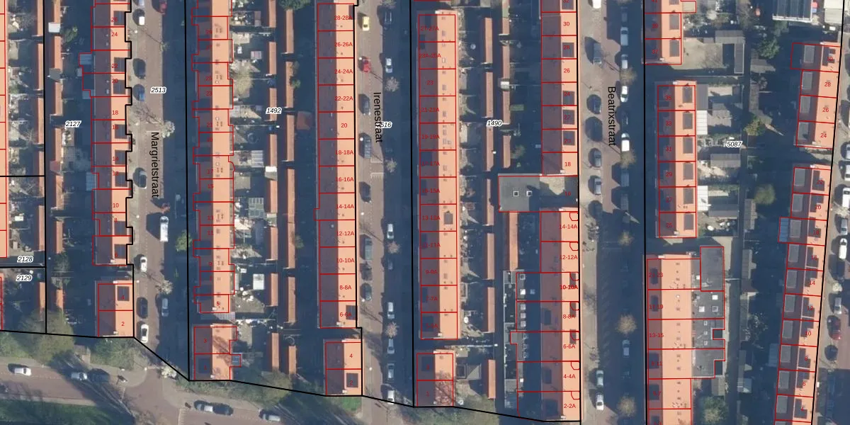 Irenestraat 13 is gelegen op kadastraal perceel LDN01N1490. Deze kadastrale aanduiding is uniek en wordt gebruikt door het Kadaster om eigendomsrechten en andere zakelijke rechten vast te leggen. Het perceel maakt onderdeel uit van de kadastrale gemeente Leiden.