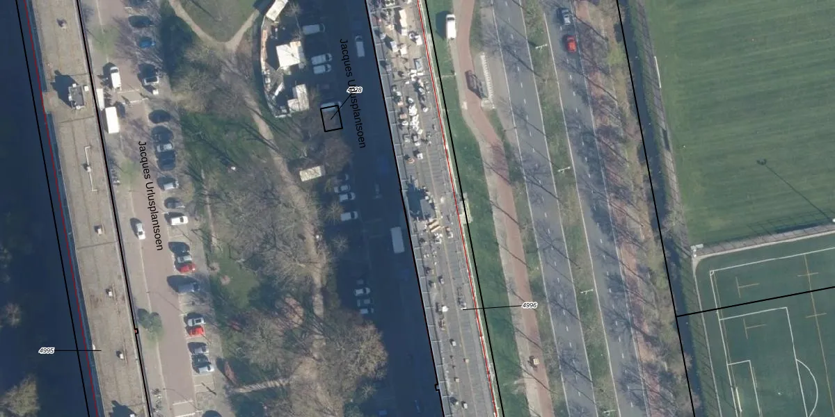 Jacques Urlusplantsoen 168 is gelegen op kadastraal perceel LDN01O4996. Deze kadastrale aanduiding is uniek en wordt gebruikt door het Kadaster om eigendomsrechten en andere zakelijke rechten vast te leggen. Het perceel maakt onderdeel uit van de kadastrale gemeente Leiden.