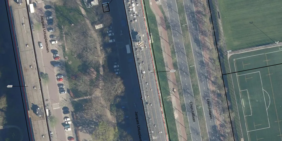 Jacques Urlusplantsoen 174 is gelegen op kadastraal perceel LDN01O4996. Deze kadastrale aanduiding is uniek en wordt gebruikt door het Kadaster om eigendomsrechten en andere zakelijke rechten vast te leggen. Het perceel maakt onderdeel uit van de kadastrale gemeente Leiden.