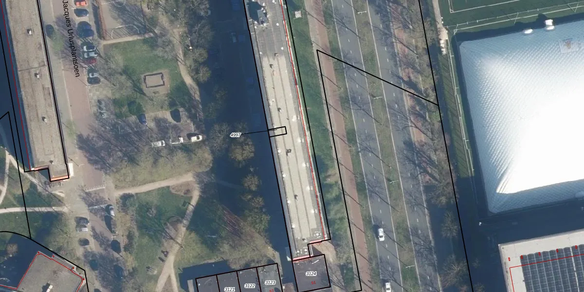 Jacques Urlusplantsoen 320 is gelegen op kadastraal perceel LDN01O4996. Deze kadastrale aanduiding is uniek en wordt gebruikt door het Kadaster om eigendomsrechten en andere zakelijke rechten vast te leggen. Het perceel maakt onderdeel uit van de kadastrale gemeente Leiden.