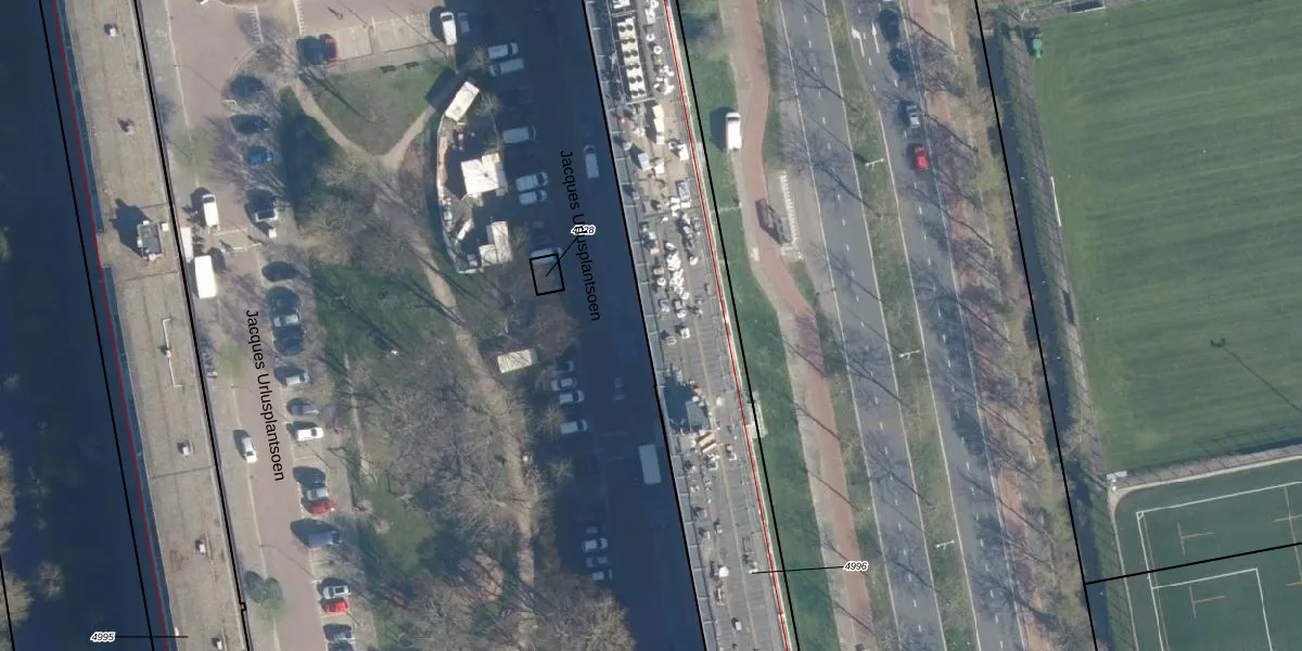 Jacques Urlusplantsoen 36 is gelegen op kadastraal perceel LDN01O4996. Deze kadastrale aanduiding is uniek en wordt gebruikt door het Kadaster om eigendomsrechten en andere zakelijke rechten vast te leggen. Het perceel maakt onderdeel uit van de kadastrale gemeente Leiden.