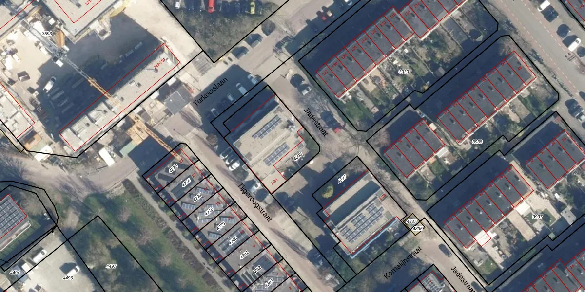 Het perceel waarop Jadestraat 23 staat heeft een oppervlakte van 665 m². Dit is een groot perceel. De perceeloppervlakte wordt geregistreerd door het Kadaster. Gedetailleerde informatie over de maten van dit perceel kunt u vinden in het rapport Kadastrale kaart met maatvoering van Jadestraat 23.