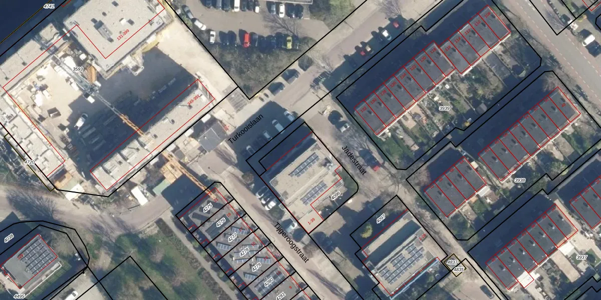 Jadestraat 33 is gelegen op kadastraal perceel LDN01X4096. Deze kadastrale aanduiding is uniek en wordt gebruikt door het Kadaster om eigendomsrechten en andere zakelijke rechten vast te leggen. Het perceel maakt onderdeel uit van de kadastrale gemeente Leiden.