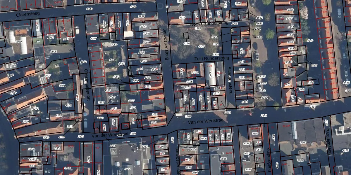 Het perceel waarop Janvossensteeg 50 staat heeft een oppervlakte van 65 m². Dit is een klein perceel. De perceeloppervlakte wordt geregistreerd door het Kadaster. Gedetailleerde informatie over de maten van dit perceel kunt u vinden in het rapport Kadastrale kaart met maatvoering van Janvossensteeg 50.