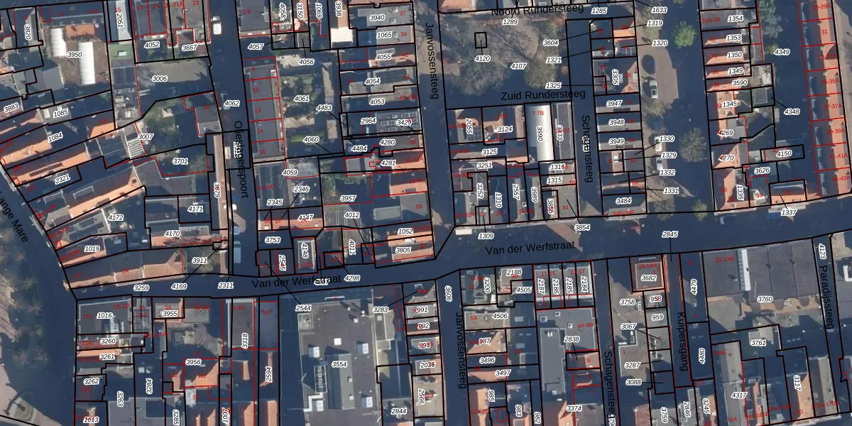 Het perceel waarop Janvossensteeg 59 staat heeft een oppervlakte van 343 m². Dit is een groot perceel. De perceeloppervlakte wordt geregistreerd door het Kadaster. Gedetailleerde informatie over de maten van dit perceel kunt u vinden in het rapport Kadastrale kaart met maatvoering van Janvossensteeg 59.