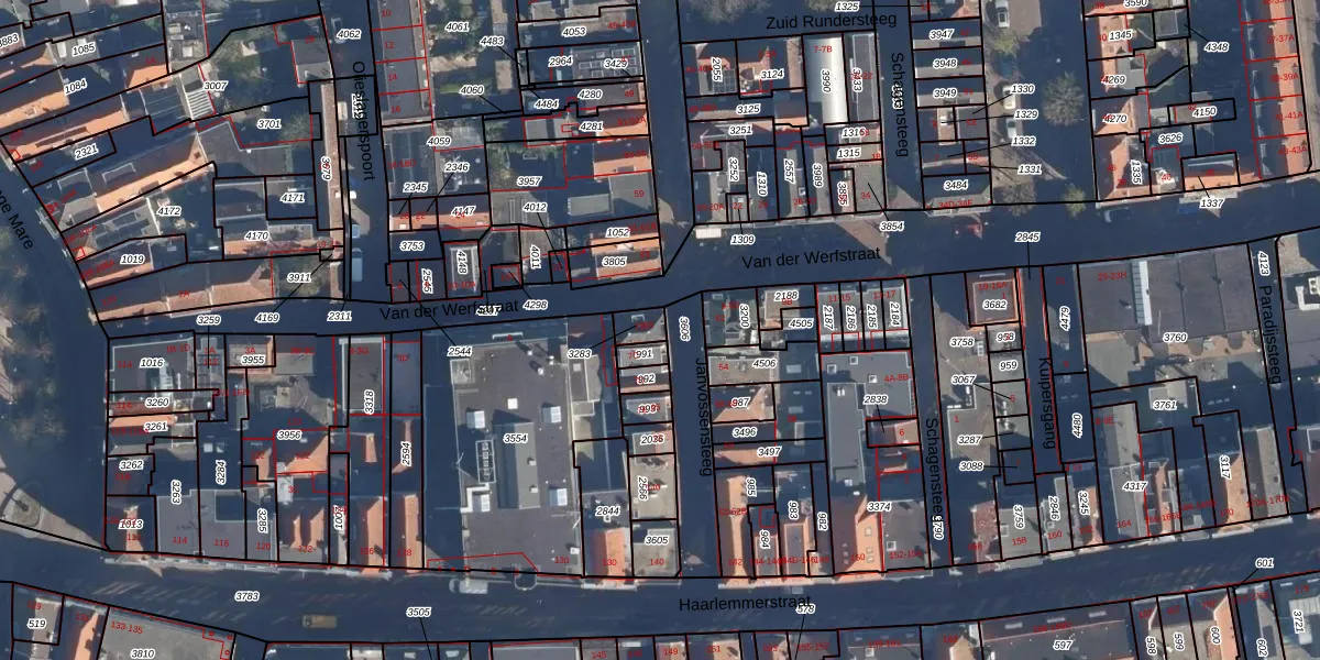 Het adres ligt op het perceel LDN01-H-3283, dat zich in de kadastrale gemeente Leiden bevindt. Het perceel is kleiner dan gemiddeld in Leiden. Het perceel is 40 m² groot, terwijl het gemiddelde ligt op 703,94 m². Het grootste perceel in de kadastrale gemeente is 51,8 ha. Het kleinste perceel heeft een oppervlakte van 0 m². Op het perceel zijn 2 adressen aanwezig. In de Basisregistratie Kadaster (BRK) werden de grenzen van het perceel geregistreerd op 19-07-1999.