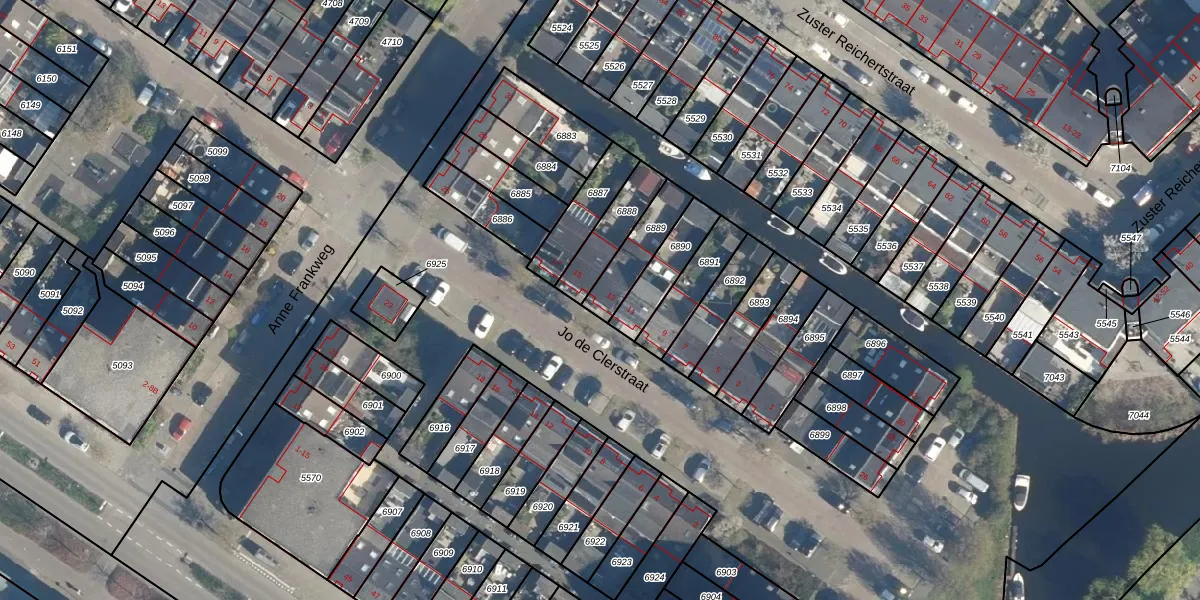 Gebruik de zoekbalk of klik op een perceel voor informatie over de adressen binnen dit perceel.