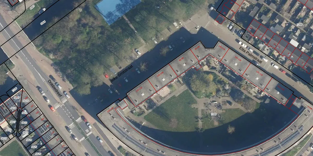 Joke Smitstraat 104 is gelegen op kadastraal perceel LDN01W7289. Deze kadastrale aanduiding is uniek en wordt gebruikt door het Kadaster om eigendomsrechten en andere zakelijke rechten vast te leggen. Het perceel maakt onderdeel uit van de kadastrale gemeente Leiden.