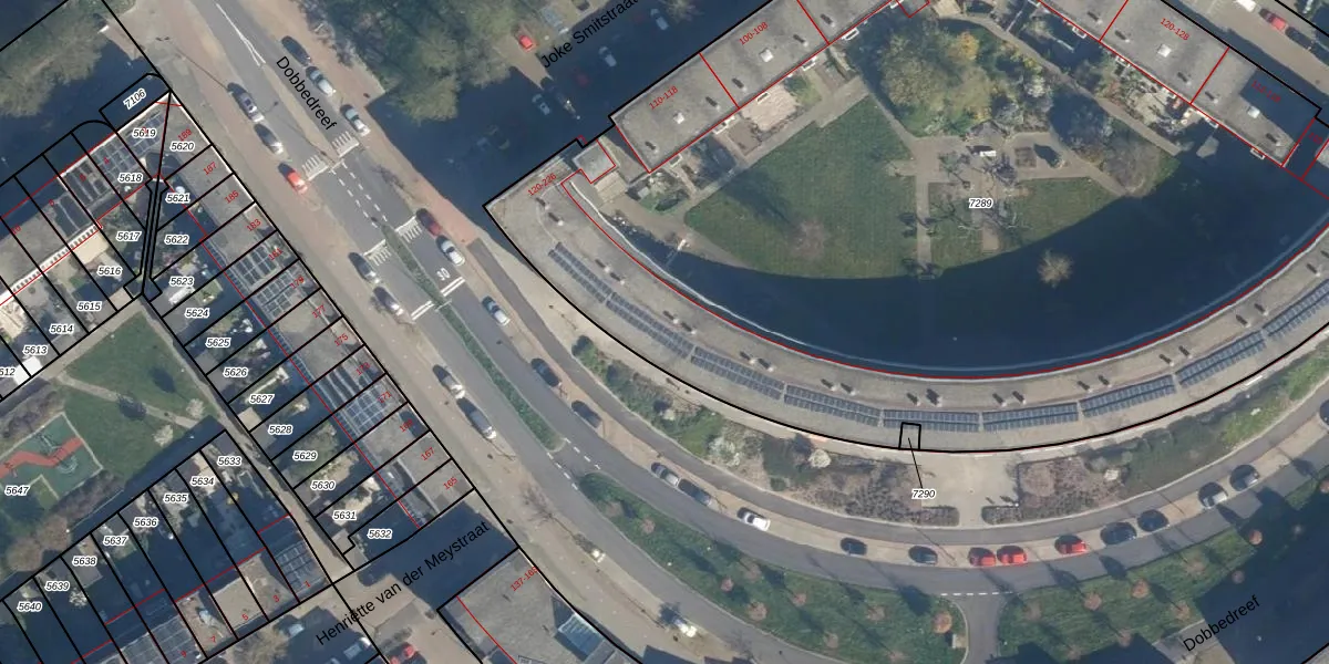 Joke Smitstraat 164 is gelegen op kadastraal perceel LDN01W7289. Deze kadastrale aanduiding is uniek en wordt gebruikt door het Kadaster om eigendomsrechten en andere zakelijke rechten vast te leggen. Het perceel maakt onderdeel uit van de kadastrale gemeente Leiden.
