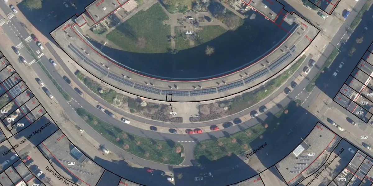 Het adres ligt op het perceel LDN01-W-7289, dat zich in de kadastrale gemeente Leiden bevindt. De oppervlakte van het perceel is 7450 m². Dat is groter dan gemiddeld in Leiden, waar de gemiddelde perceeloppervlakte op 703,94 m² ligt. Het grootste perceel in de kadastrale gemeente is 51,8 ha. Het kleinste perceel heeft een oppervlakte van 0 m². Op het perceel liggen in totaal 145 adressen. De laatste wijziging in het de Basisregistratie Kadaster (BRK) was op 29-08-2003.