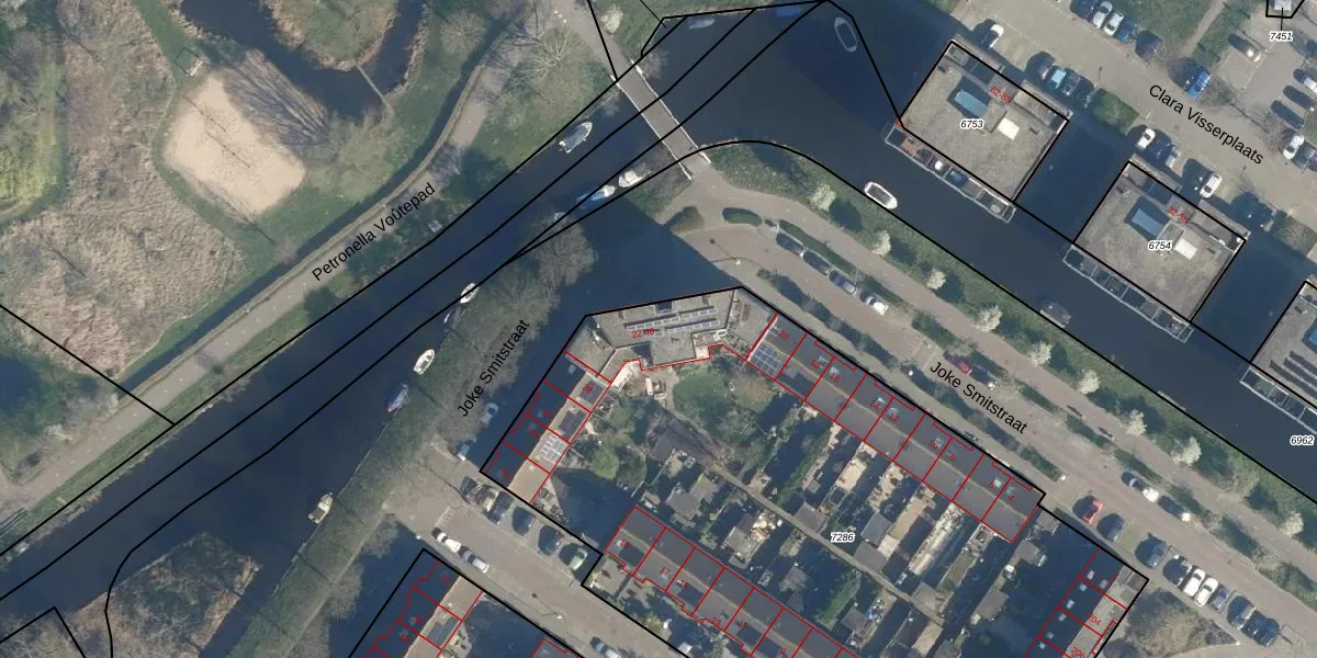 Joke Smitstraat 46 is gelegen op kadastraal perceel LDN01W7286. Deze kadastrale aanduiding is uniek en wordt gebruikt door het Kadaster om eigendomsrechten en andere zakelijke rechten vast te leggen. Het perceel maakt onderdeel uit van de kadastrale gemeente Leiden.