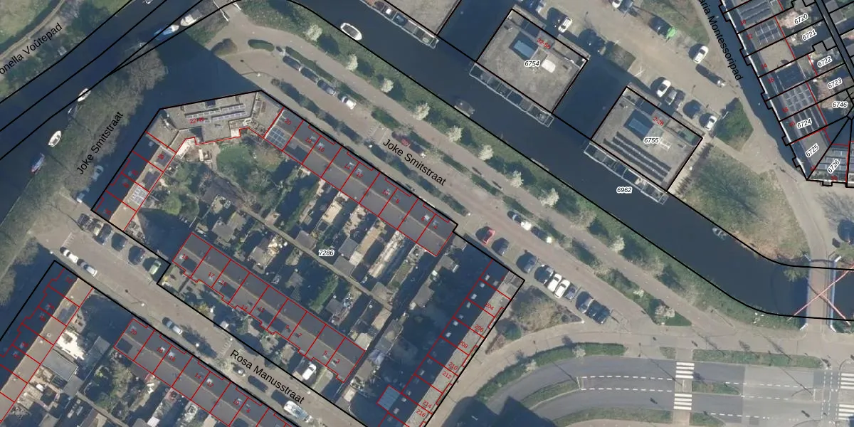 Joke Smitstraat 6 is gelegen op kadastraal perceel LDN01W7286. Deze kadastrale aanduiding is uniek en wordt gebruikt door het Kadaster om eigendomsrechten en andere zakelijke rechten vast te leggen. Het perceel maakt onderdeel uit van de kadastrale gemeente Leiden.
