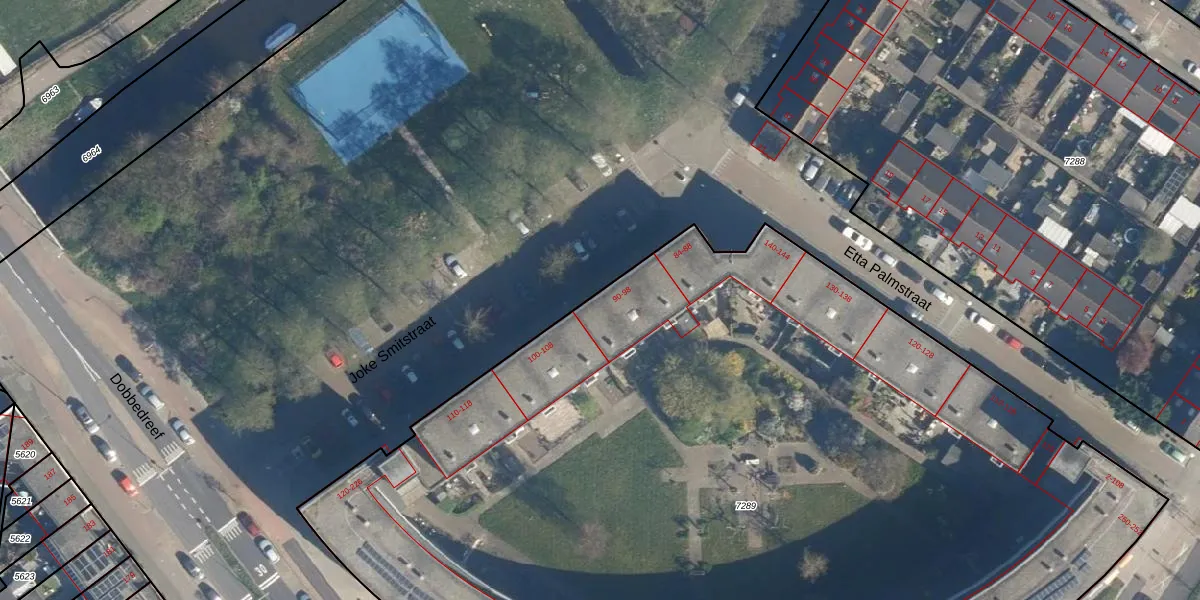 Joke Smitstraat 90 is gelegen op kadastraal perceel LDN01W7289. Deze kadastrale aanduiding is uniek en wordt gebruikt door het Kadaster om eigendomsrechten en andere zakelijke rechten vast te leggen. Het perceel maakt onderdeel uit van de kadastrale gemeente Leiden.
