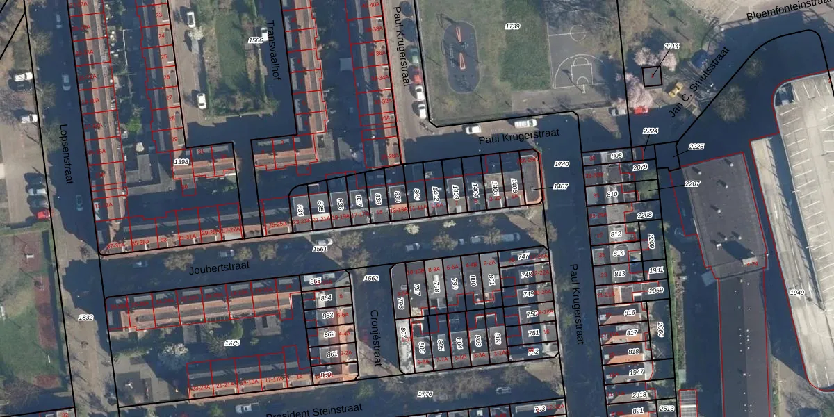 Het perceel waarop Joubertstraat 11-A staat heeft een oppervlakte van 56 m². Dit is een klein perceel. De perceeloppervlakte wordt geregistreerd door het Kadaster. Gedetailleerde informatie over de maten van dit perceel kunt u vinden in het rapport Kadastrale kaart met maatvoering van Joubertstraat 11-A.
