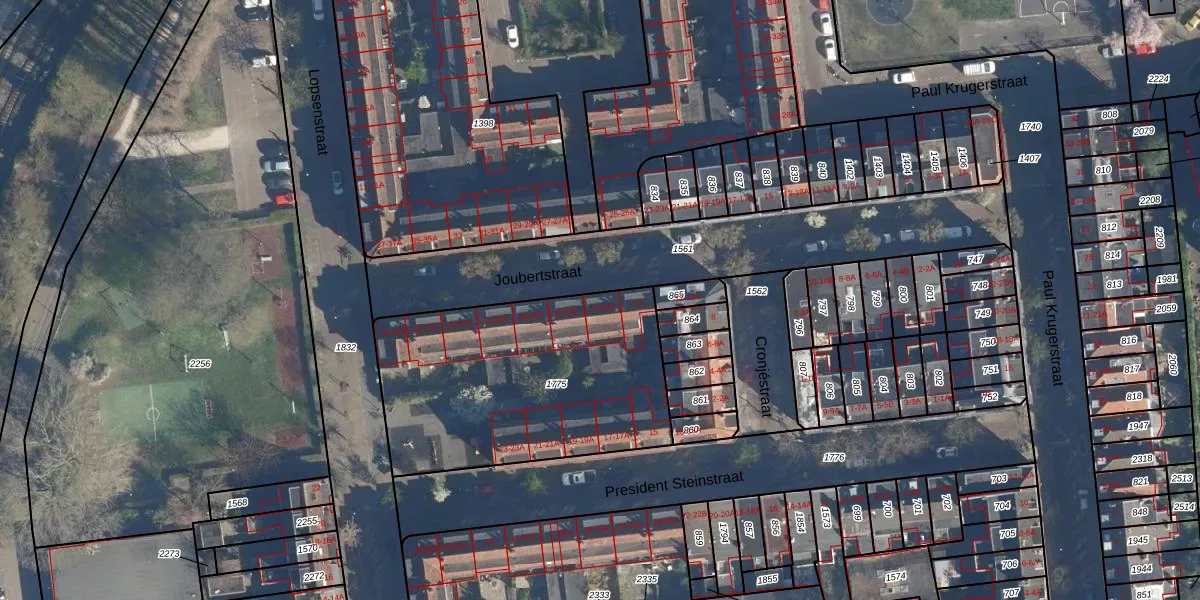 Het perceel waarop Joubertstraat 16 staat heeft een oppervlakte van 1251 m². Dit is een zeer groot perceel. De perceeloppervlakte wordt geregistreerd door het Kadaster. Gedetailleerde informatie over de maten van dit perceel kunt u vinden in het rapport Kadastrale kaart met maatvoering van Joubertstraat 16.