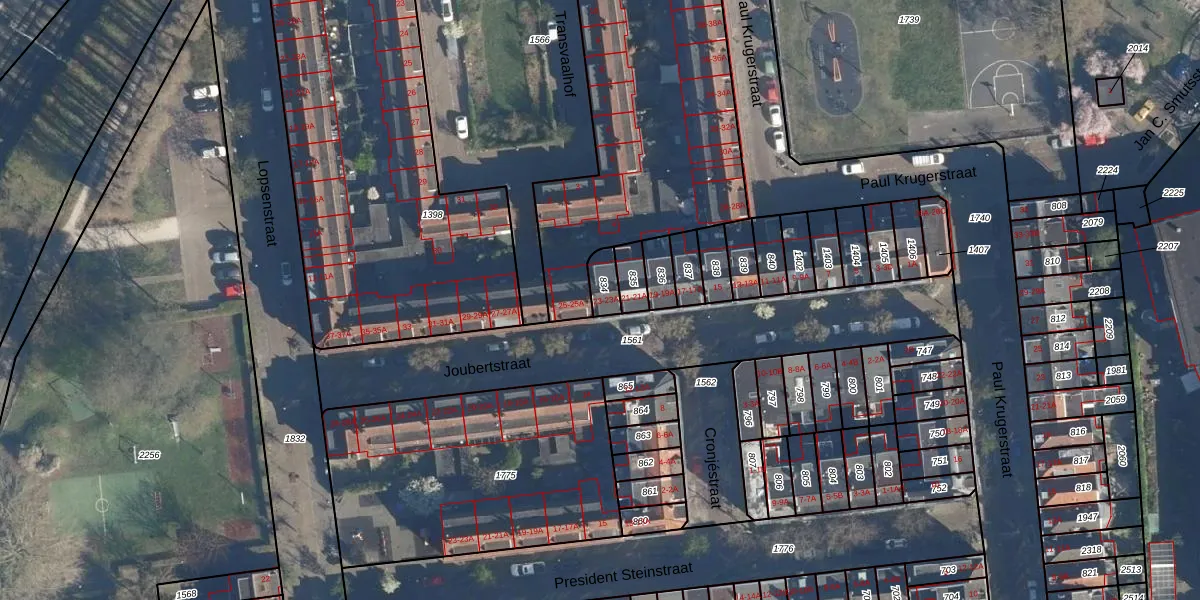 Het perceel waarop Joubertstraat 23-A staat heeft een oppervlakte van 49 m². Dit is een klein perceel. De perceeloppervlakte wordt geregistreerd door het Kadaster. Gedetailleerde informatie over de maten van dit perceel kunt u vinden in het rapport Kadastrale kaart met maatvoering van Joubertstraat 23-A.
