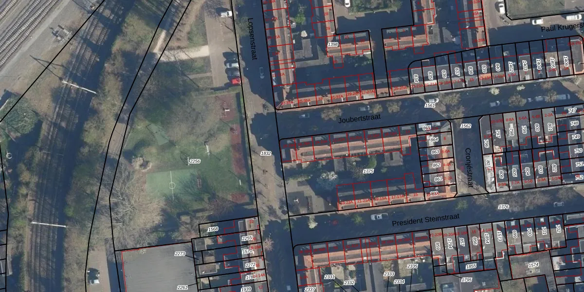 Het perceel waarop Joubertstraat 28-A staat heeft een oppervlakte van 1251 m². Dit is een zeer groot perceel. De perceeloppervlakte wordt geregistreerd door het Kadaster. Gedetailleerde informatie over de maten van dit perceel kunt u vinden in het rapport Kadastrale kaart met maatvoering van Joubertstraat 28-A.